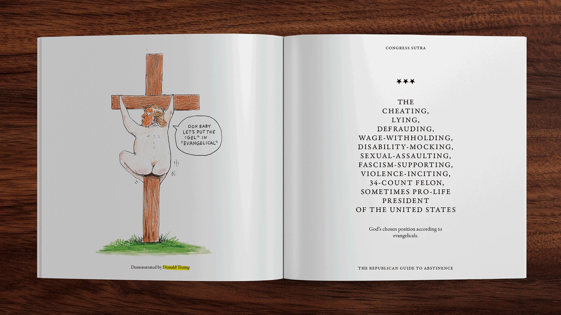 It’s clear that conservative politicians would rather people have no sex than get an abortion, so we made them the solution to their own problem. Congress Sutra is a sex book designed to turn you off, featuring pro-life politicians doing the dirty so you won’t want to.